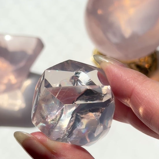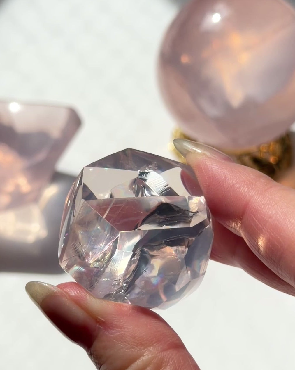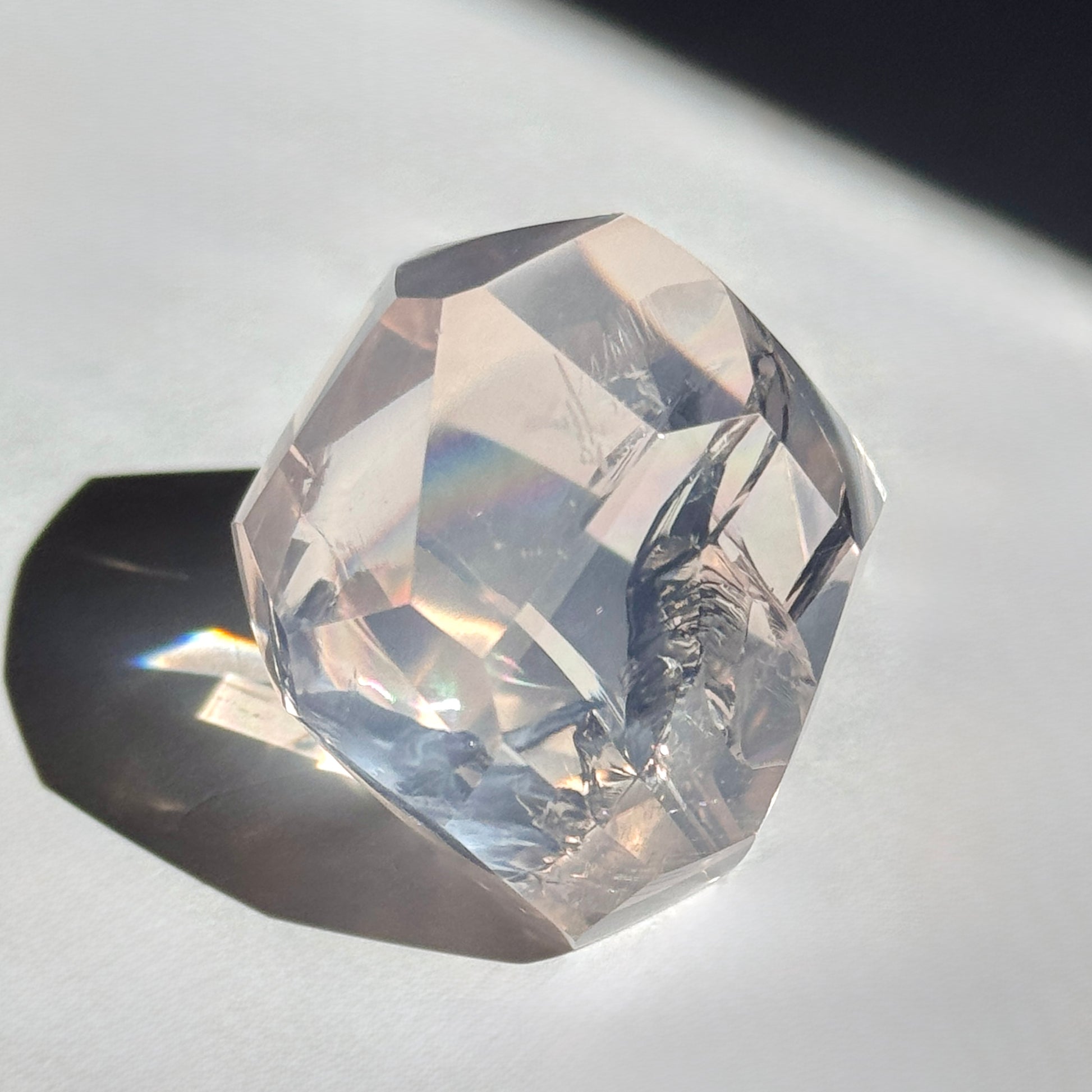 内部のクラックがミラーのように反射して、虹色のプリズムを生み出します。