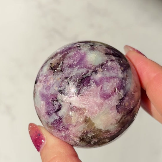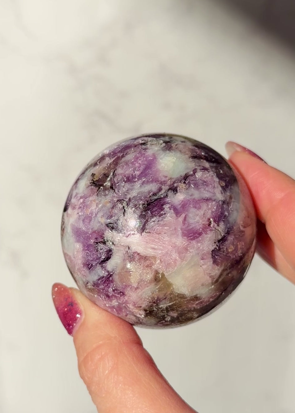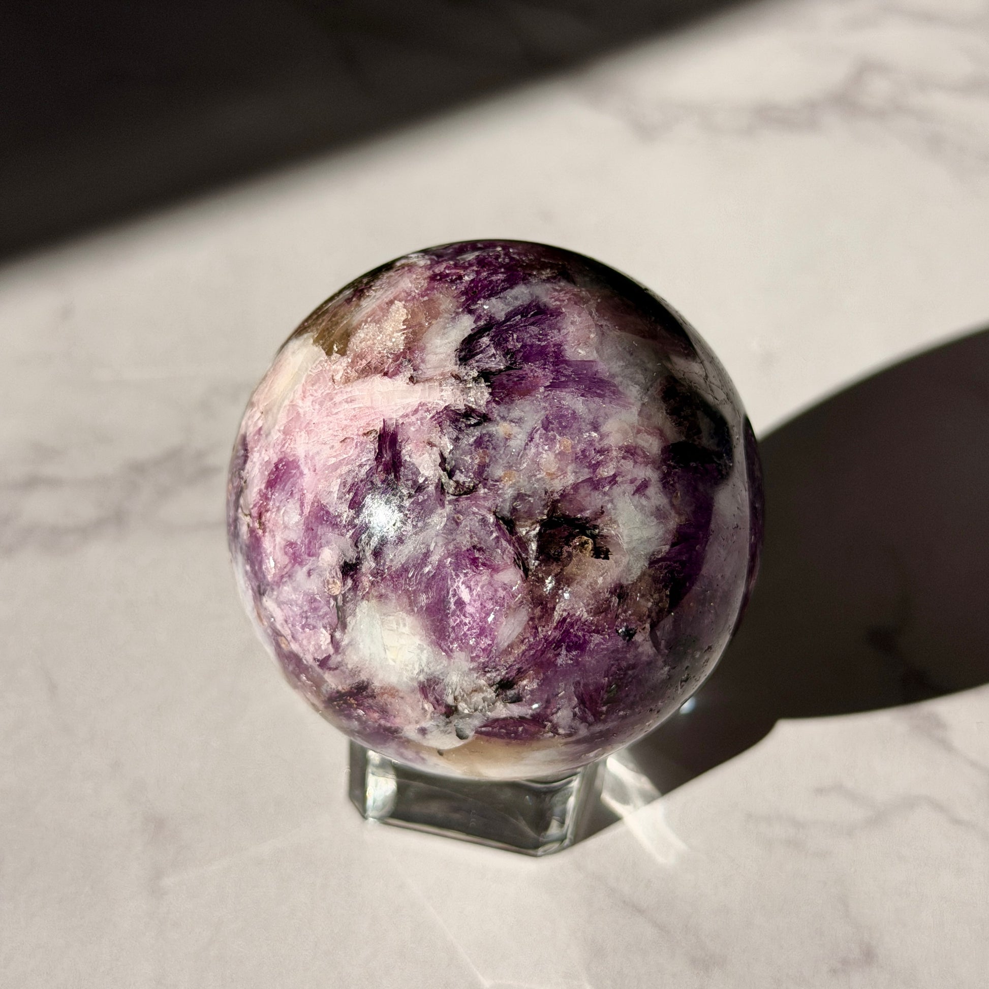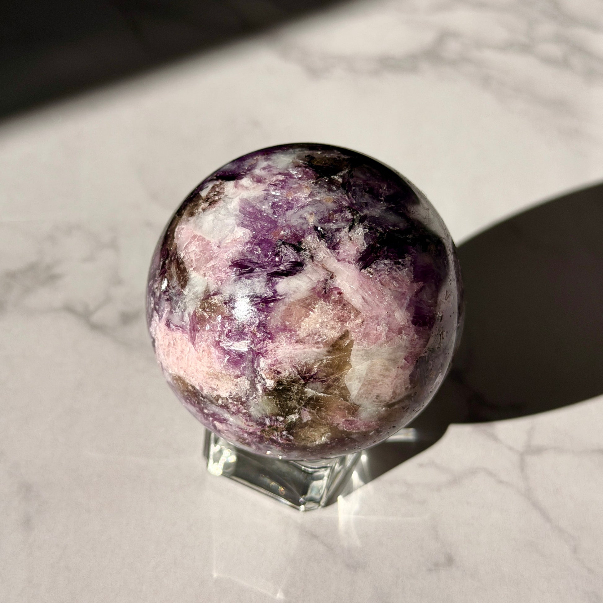 ブラジル産レピドライトwithピンクトルマリンのスフィアです。